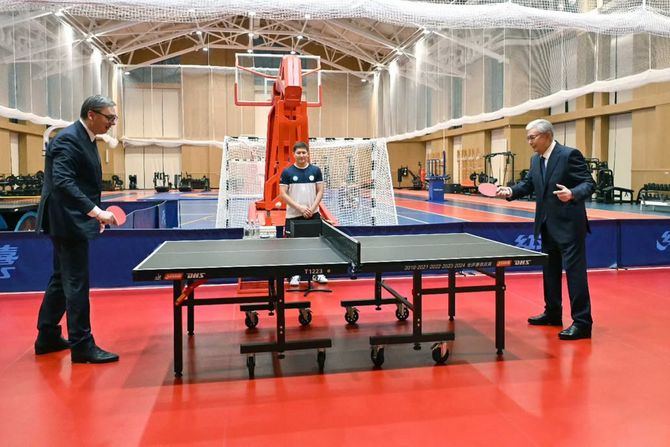 Predsednik Srbije Aleksandar Vučić objavio je na svom Instagram nalogu fotografiju na kojoj se vidi kako igra stoni tenis sa predsednikom Kazahstana Kasimom Žomart Tokajevim.